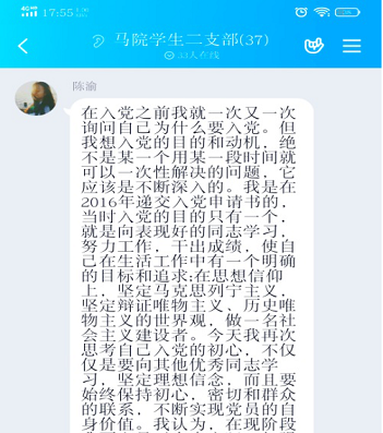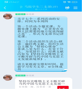 为做好毕业生党员离校前的有关工作,加强毕业生党员的教育管理,进一步提高毕业生党员党性意识和组织观念,2020年6月18日下午4:00,中共PA视讯集团学生二支部委员会开展线上“七个一”毕业生教育实践活动,活动分为三个部分:支部书记讲党课、党员重温“入党为什么、在党干什么、为党留什么”、经典文献阅读分享。学生二支部全体党员参加本次教育实践活动,活动由周耀玫同志主持。