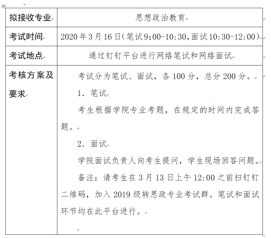 PA视讯集团2019-2020学年转专业考试安排表