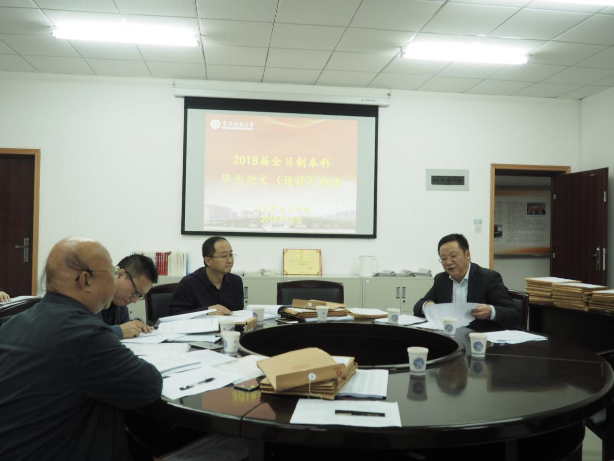 接着,专家组对我院毕业论文组织管理工作是否规范、毕业论文工作材料是否按学校要求进行归档、毕业论文选题、题目更新率、指导教师与评阅教师安排是否符合要求等项目进行了认真细致的审查,并随机抽取了部分学生的毕业论文纸质文档进行检查。