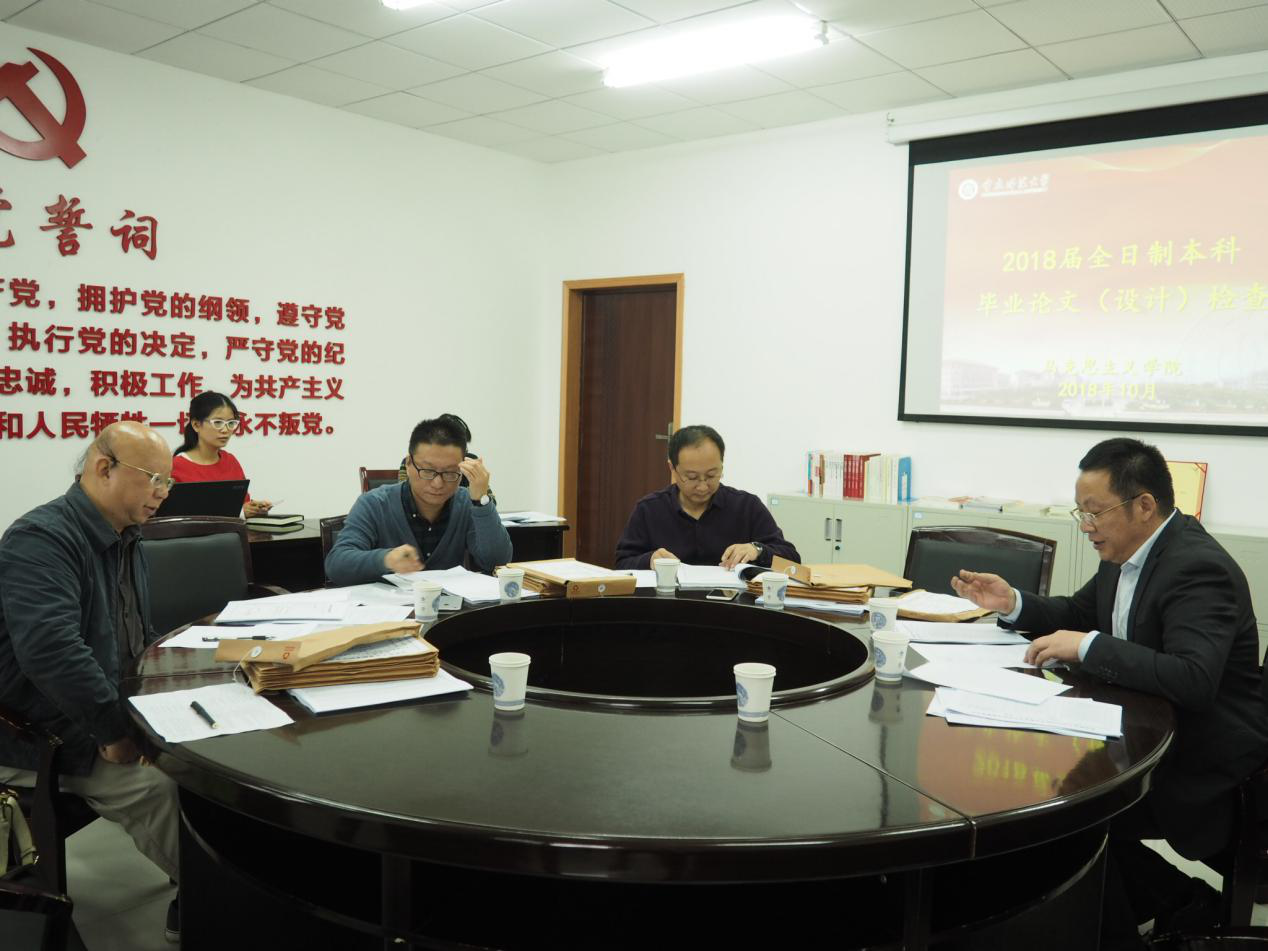毕业论文是本科人才培养方案的重要组成部分,是学生综合运用所学专业知识解决学术和实际问题的重要方式,是提高学生实践能力的有效途径。2018年10月16日下午,校专家组来我院就2018届全日制本科生毕业论文(设计)工作进行检查。历史与社会学院院长常云平教授任专家组组长,专家组成员为地理与旅游学院副院长胡志毅教授、数学科学学院副院长赵克全教授。我院党政领导、教学督导组、政教系、教科办相关负责人参会。