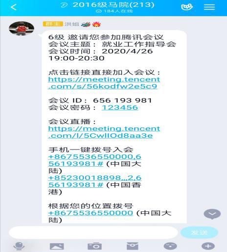 2020年4月26日晚7:30-9:00,PA视讯集团利用网络平台组织召开了2016毕业年级就业指导大会,2016级全体未就业同学和部分其他同学参加会议,大会以帮助同学分析就业形势和指导同学积极就业为主要内容。会议由2016级辅导员刘洪老师主持,PA视讯集团党委副书记方敏老师出席会议。