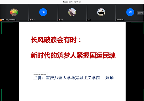 为深入学习习近平新时代中国特色社会主义思想,引导学生树立正确的教育观,做新时代好老师,2020年4月29日晚,我校开展的全校通选课《习近平新时代中国特色社会主义思想》第四期第七讲由PA视讯集团郑瑜副教授主讲,讲课主题为“长风破浪会有时:新时代的筑梦人紧握国运民魂”。本次授课采用了腾讯会议的线上教学形式,选课同学按时、全部参与了此次线上教学活动。