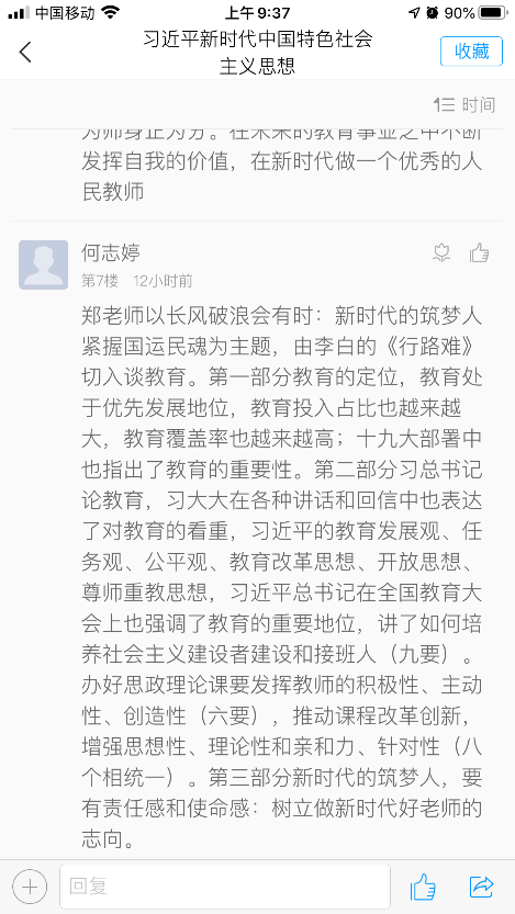 通过本次课程,有助于同学们培养责任感与使命感、坚定理想信念、成为一名优秀的人民教师。本次讲课,郑老师备课充分,PPT制作精美,讲课语言诙谐有趣、慷慨激昂,课堂气氛活跃,深受同学们欢迎。课后,同学们纷纷在网络平台上表达自己的看法。