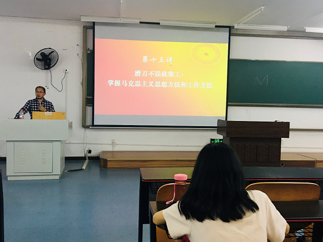 首先,田方林教授以习近平总书记在党的十九大报告中的一段话引题,生动细致地开始了“坚持实事求是的思想方法和工作方法”、“坚持战略定力的思想方法和工作方法”、“坚持问题导向的思想方法和工作方法”、“坚持全面协调的思想方法和工作方法”、“坚持底线思维的思想方法和工作方法”、“坚持调查研究的思想方法和工作方法”、“坚持抓铁有痕的思想方法和工作方法”、“坚持历史担当的思想方法和工作方法”等八个方面的讲述。在课堂中,田方林教授紧扣时事,用幽默风趣的语言多次深入剖析新冠肺炎疫情、中外摩擦等实例,将理论与实际相结合,更将习近平新时代中国特色社会主义思想融入生活,贯穿始终。课堂的最后,田方林教授总结了课程主要内容,并对学生的未来提出了期望。