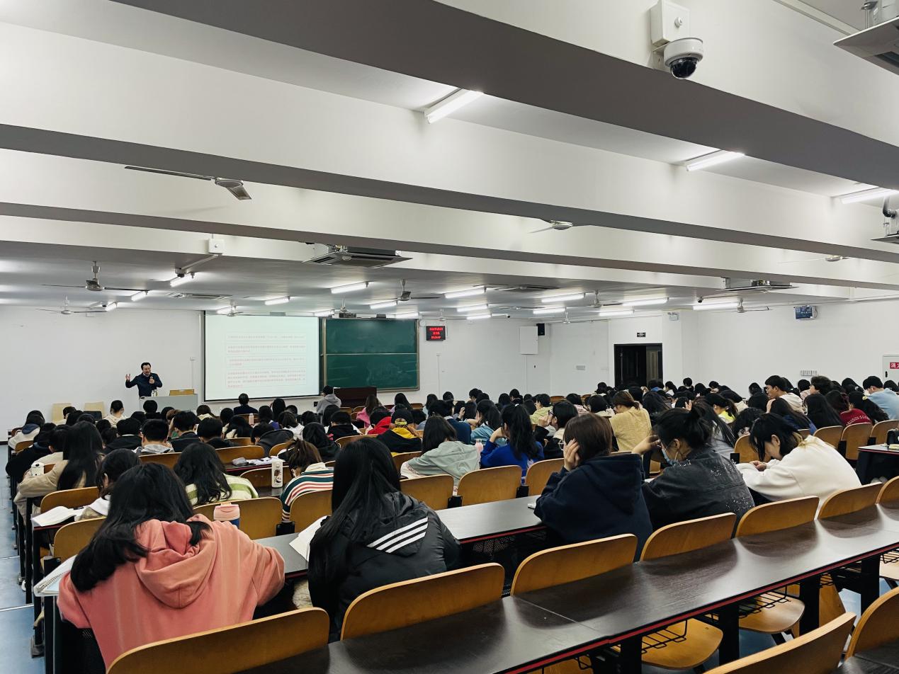 曾礼教授围绕“共产党人的思想旗帜,伟大事业的根本指针——深刻认识习近平新时代中国特色社会主义思想的决定性意义”,从“时代背景”、“核心内容”、“历史地位及贡献”和“做新时代中国特色社会主义传播者、践行者”四个方面进行深入浅出的讲解。曾礼教授通过引入习近平新时代中国特色社会主义思想产生的时代背景,介绍了新时代的五个丰富内涵、重大意义和新时代带来国际国内和党的自身建设新变化新挑战,并结合中美贸易战、新冠肺炎疫情病毒溯源美国甩锅中国和俄乌冲突,让同学们看清西方资本主义的本质。接下来,曾礼教授阐释了习近平新时代中国特色社会主义思想“十个明确”的基本理论和“十四个坚持”的基本方略,并结合中国对非洲的援助,《长津湖》、《觉醒年代》等影视剧,阐释了习近平新时代中国特色社会主义思想的历史地位及贡献,以及中国共产党为什么能、中国特色社会主义为什么好,归根结底在于马克思主义行,让同学们坚定道路自信、理论自信、制度自信和文化自信。