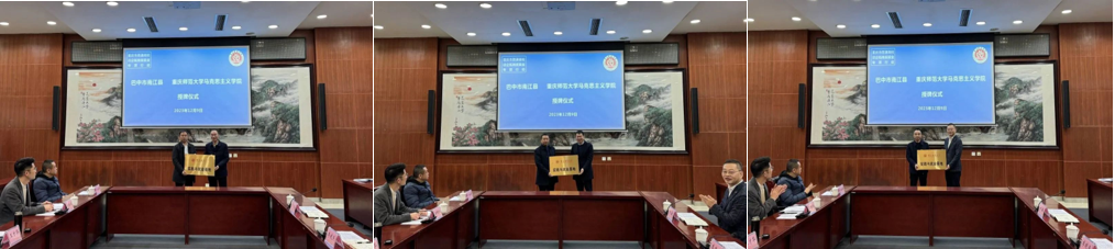 会议第四项,举行授牌仪式。我院党委书记李晓燕、副院长姜土生(主持工作)、党委副书记方敏分别为南江中学、长赤中学、小河职业中学授予“实践与就业基地”牌匾。