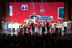 歌舞《让世界看见我们的光芒》展现了林悦的支教生活充实而精彩,也让观众领略到了高原格桑花的独特魅力,感受到了高原之上熠熠生辉的青春梦想。在支教生活中,林悦努力发现学生的闪光点,引领他们追逐自己的梦想,与学生建立了深厚的师生情谊。一首《一声老师,一生老师》唱出了浓浓师生情,在温情的歌声中,学生代表们向今年荣休的陈洪、周绍英老师及新加入我院的谭景文、李瑜萱、李广稷、孙贝、耿靖、程思捷等老师送上了感恩和祝福的鲜花。