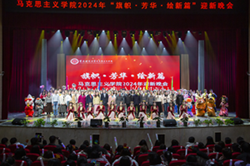 2024年12月30日19时,我院于校友会堂演出厅举办以“旗帜·芳华·绘新篇”为主题的2024年迎新晚会。校党委书记张艳莅临晚会现场,院党委书记李晓燕,党委副书记、执行院长姜土生,党委副书记方敏,副院长侯玲、田方林,学院全体师生,各校级组织、兄弟学院教师代表、学生代表共同参与。