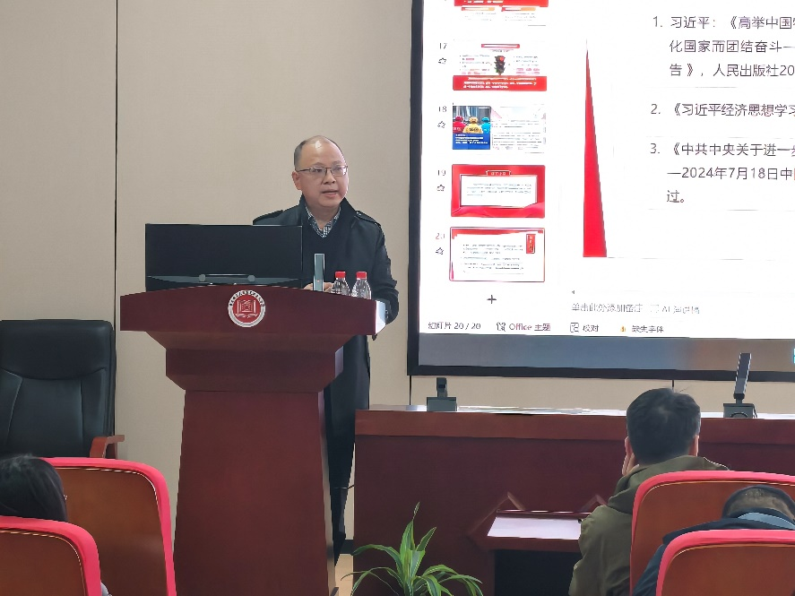 为加强青年教师队伍建设,提升教师教育教学能力,11月13日下午,我院在汇贤楼106会议室开展2025-2026学年秋季学期教学观摩活动。活动特邀孙贝和张艺立两位青年博士进行教学展示,学院领导班子成员及全体教职工参加。活动由形势与政策教研室主任蒋明伟副教授主持。