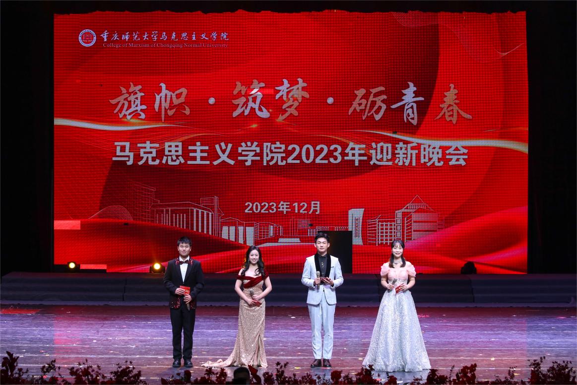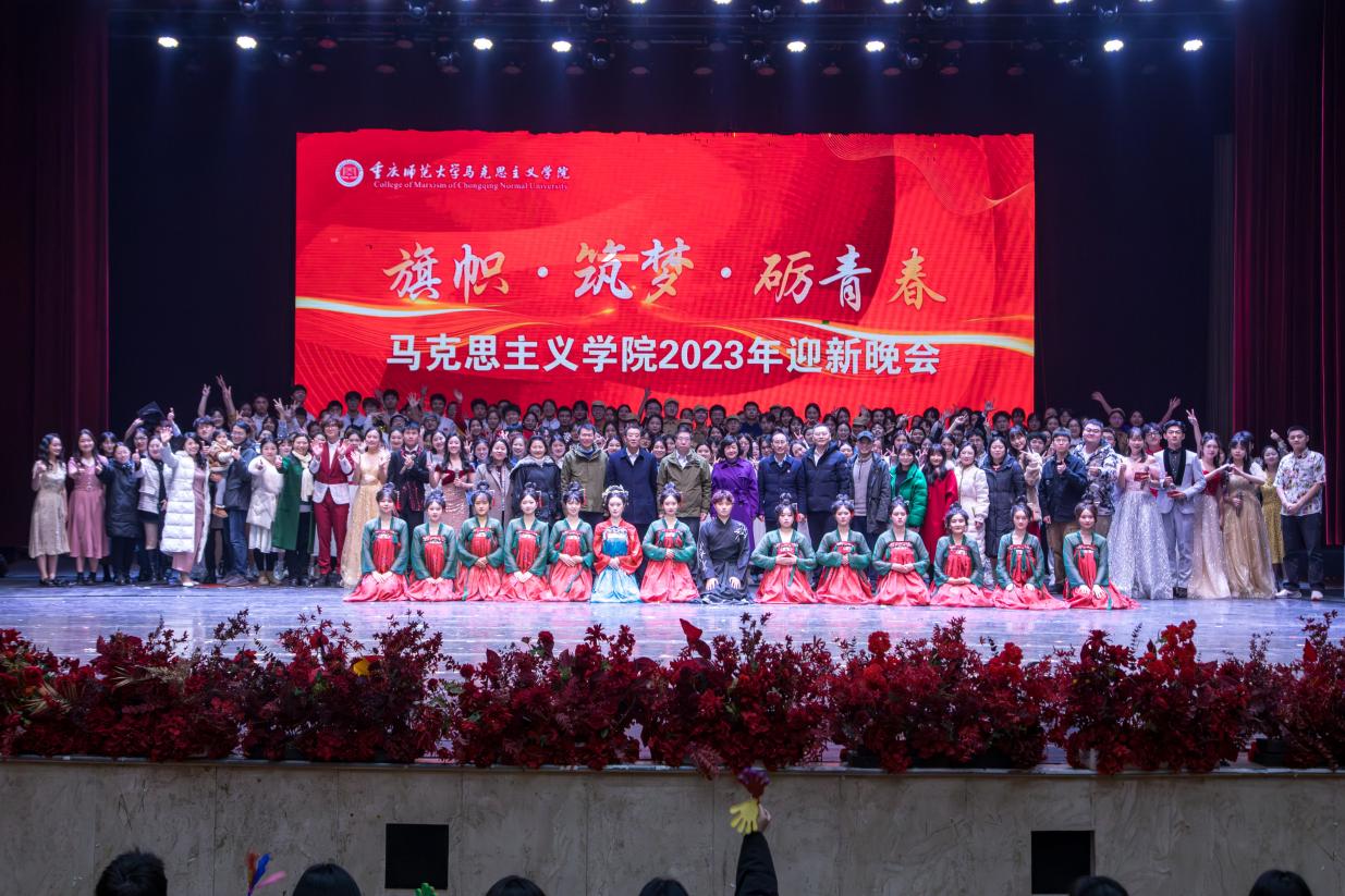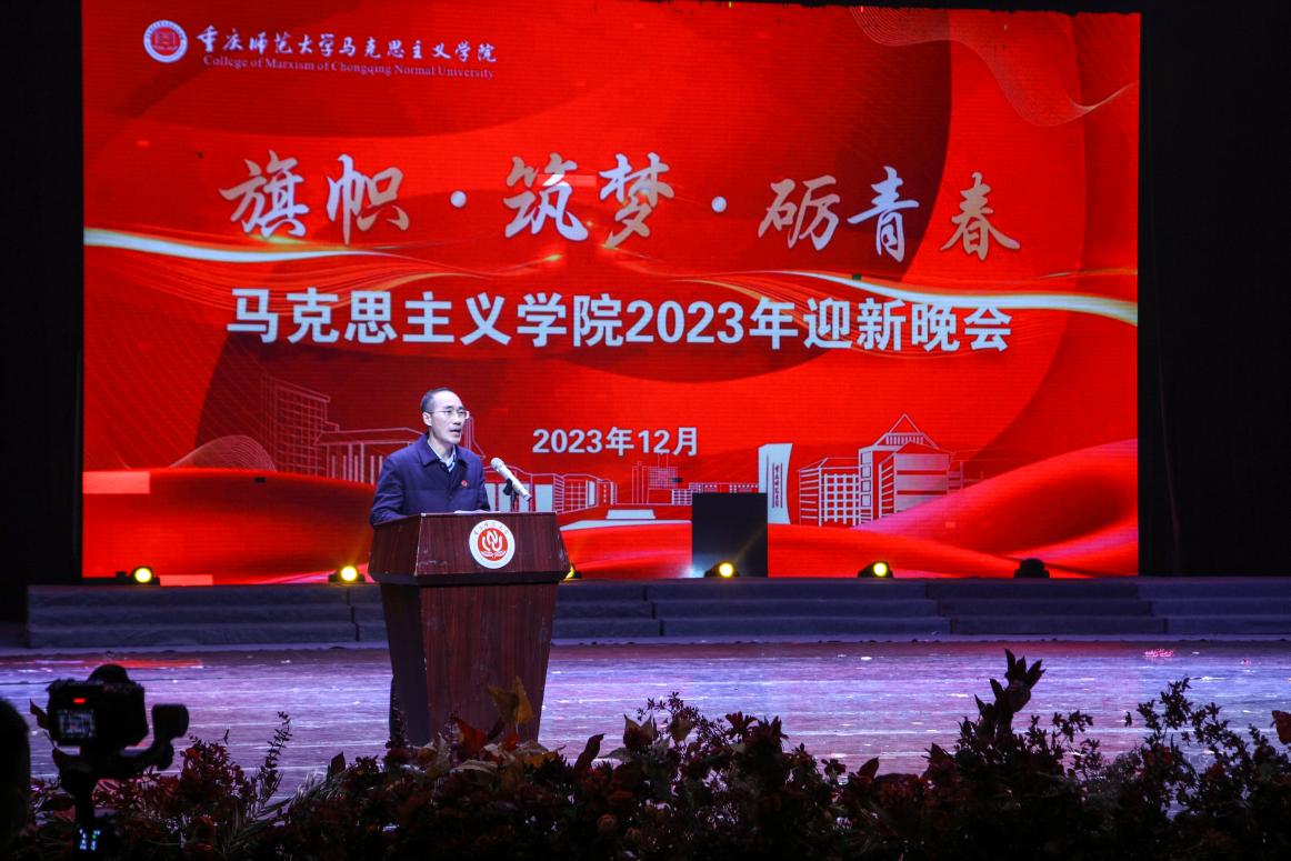 2023年12月20日19时,我院于校友会堂演出厅举办以“旗帜•筑梦•砺青春”为主题的2023年迎新晚会。重庆师范大学党委副书记、校长、学院院长孟东方教授,校党委副书记陈志军教授,校党委常委、副校长黄永宜教授,党委学工部部长、学生处处长胡小强,校团委书记高菁励莅临晚会现场。学院党政领导班子,校级学生组织、兄弟学院教师代表、学生代表以及我院全体师生共同参与。