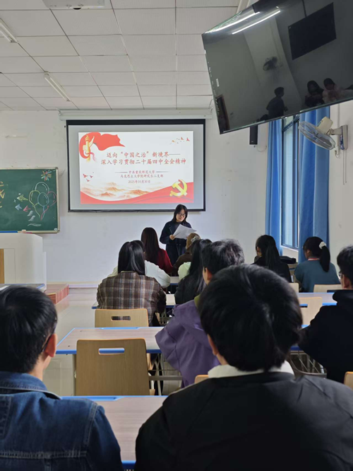2025年10月30日13:30,研究生二支部在汇贤楼X103教室组织开展了以《迈向“中国之治”新境界——深入学习贯彻党的二十届四中全会精神》为题的主题党日活动。支部书记代悦主持会议并总结讲话。支部全体党员参加会议。