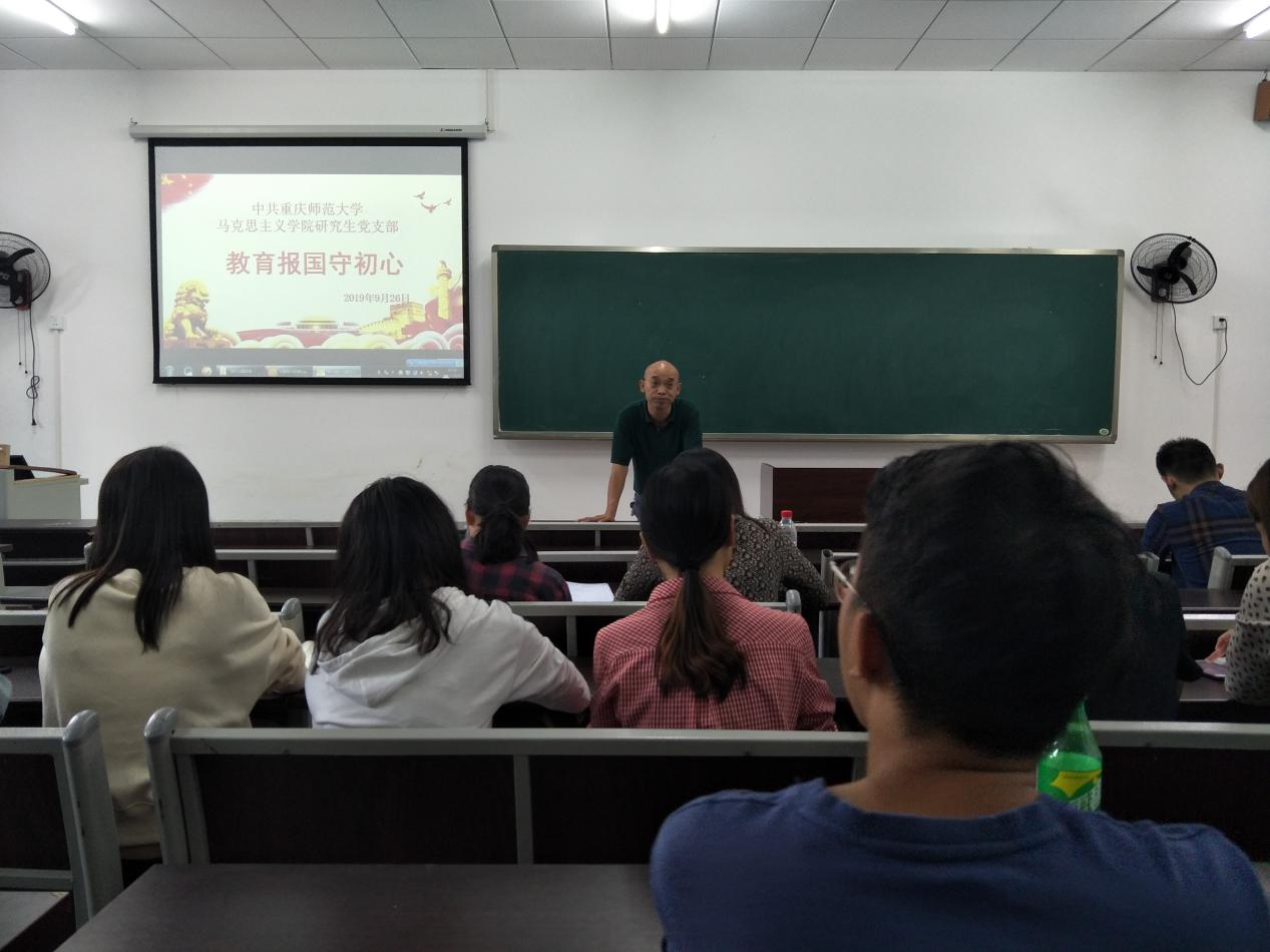 本次主题党日活动的主题是“教育报国守初心”,从两个方面进行开展。首先,由支部书记李剑带领大家对学院开展的“不忘初心、牢记使命”主题教育动员会上的精神进行传达和领会,并带领全体同志学习了《深入学习习近平关于教育的重要论述》相关篇目的讲话文段,对接下来大家的工作目标、学习安排以及作为教育工作者的工作要求进行了阐述,强调必须要认真学习和贯彻习近平新时代中国特色社会主义思想,进一步提高自身的党性修养,明确教育工作的社会意义,树立正确的价值观,争做有理想信念、道德情操、扎实学识、仁爱之心的好老师。紧接着,党员同志们就“教育报国初心”这个主题分别进行了交流发言,从亲身经历、社会导向、人生意义等方面对教育工作进行了深入探讨。同志们一致认为:作为未来即将要从事教育工作的我们,应该努力培养自己的道德情操,以更高的标准严格审视和要求自己。最后,支部书记李剑对大家的发言进行总结,并以习近平总书记同北京师范大学师生代表座谈时的讲话为结束语,强调教师的重要性,鼓励同志们要坚定理想信念,以仁爱之心拥抱美好未来。