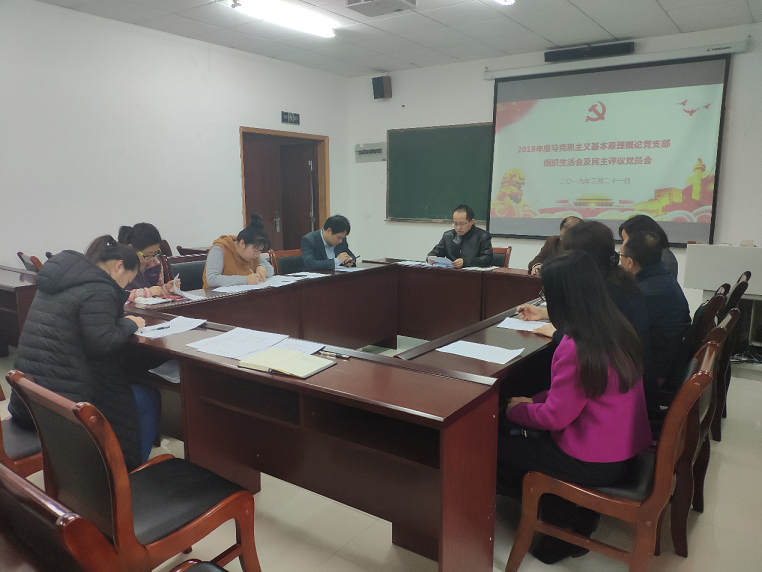 按照学校党委《关于认真召开2018年度基层党组织组织生活会和开展民主评议党员的通知》精神及学院党委相关要求,3月21日,马克思主义基本原理概论党支部(简称马基原支部)在学院201会议室召开了以“学用新思想、建功新时代”为主题的组织生活会及民主评议党员会。支部全体成员到会,本次活动由支部书记李长泰教授主持,田方林教授还作为学院党委委员列席指导。