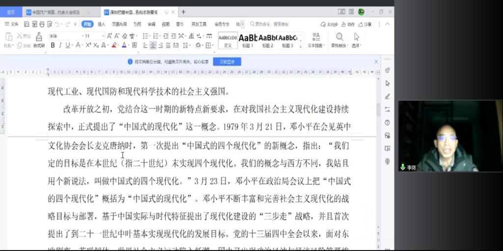 2022年12月29日晚上19点,学院研究生第一支部通过腾讯会议平台开展云端以“深刻把握中国式现代化的中国特色和本质要求”为主题的党日活动,会议由支部书记李剑同志主持。
