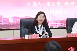 首先,侯玲副院长对项久雨教授的到来表示热烈欢迎,并表示本次讲座是一场思想交流的盛宴。同时,她要求我院研究生能够通过专题学习激发对中华文明转型的深入思考,从而进一步拓宽学术视野,提升综合素质。