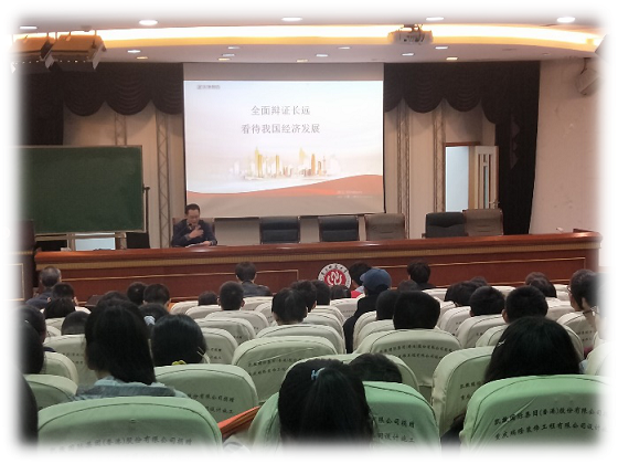 董景荣教授以“全面辨证长远看待我国经济发展”为主题向同学们讲授了本专题的课程内容。首先,董景荣教授通过数据与事实向同学们讲授了中国作为经济大国的崛起,他通过直观的PPT图片使同学们清楚地了解了中国经济总量和经济发展水平;随后,董景荣教授又给同学们讲授了中国人均GIN在世界银行分组地位的变化以及中国人均GIN的国际比较;最后,童教授通过进出口、GDP和主要生产部门等方面的讲解让同学们对于中国经济发展水平和国际地位有了进一步的了解。在此基础上,董景荣教授还以“看冲击,形有波动 势仍向好”、“开药方,精准施策 “六保”护盘”、“观长远,化危为机 韧性依旧”三个方面引导同学们正确、辩证、长远看待当前我国经济面临的形势和未来发展的方向。