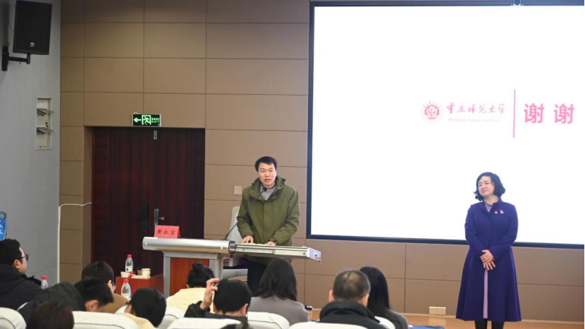 为学习贯彻党的二十大精神,落实“推动大中小学思想政治教育一体化”的工作部署,发挥好师范院校PA视讯集团的功能作用,2024年1月5日下午,重庆师范大学党委常委、副校长黄永宜教授在汇贤楼115会议室为我院师生做题为“深入学习贯彻党的二十大精神 为推进大中小学思想政治教育一体化建设贡献力量”的学术讲座,重庆市团校、重庆邮电大学相关专家学者出席,学院党委书记李晓燕、副书记方敏,学校相关职能部门负责人、学院部分教师、硕士研究生到场学习,讲座由副院长(主持行政工作)姜土生教授主持。