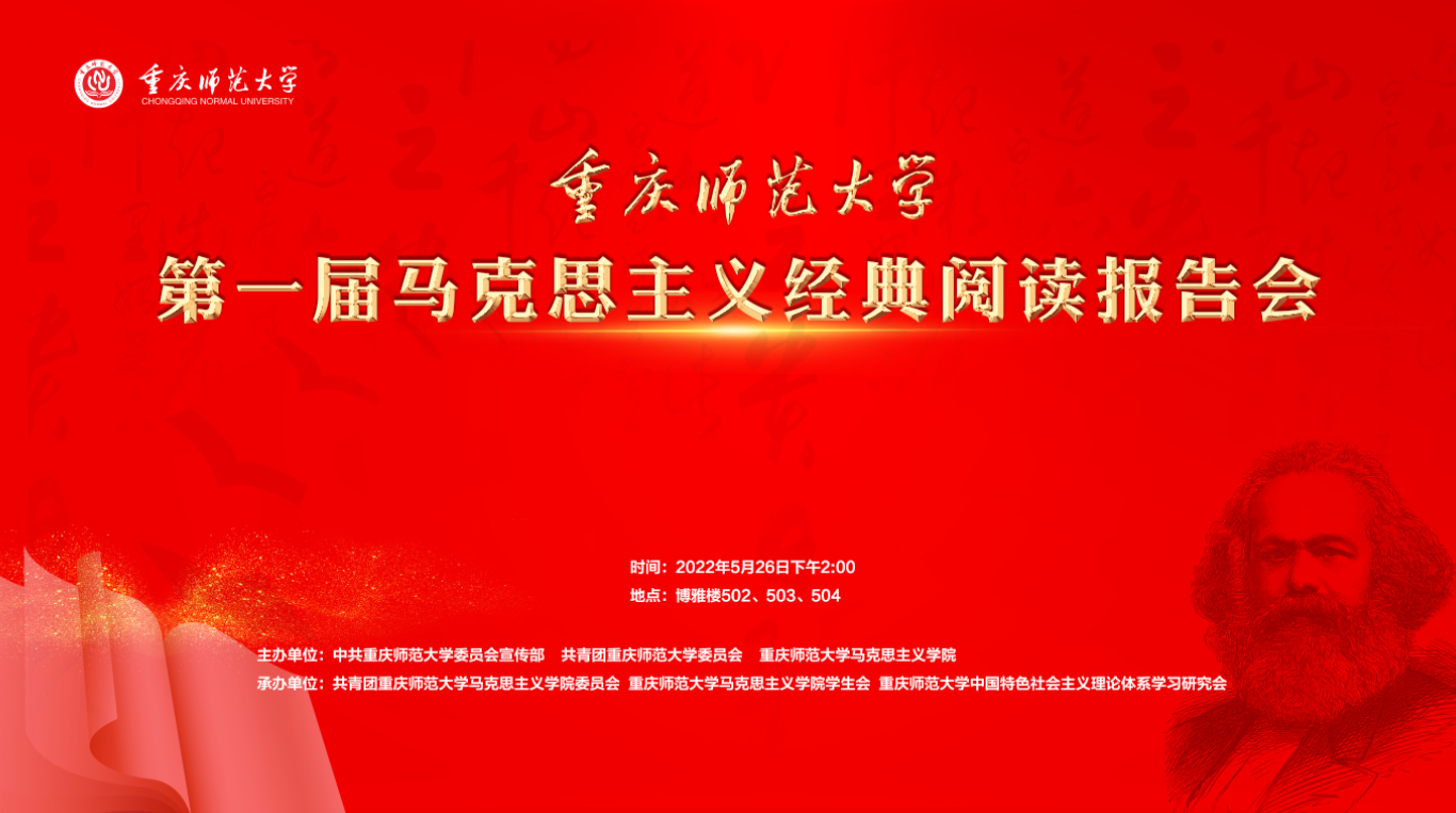 2022年5月26日14时,由校党委宣传部、校团委、PA视讯集团共同举办的重庆师范大学第一届马克思主义经典阅读报告会决赛暨颁奖仪式隆重举行。本次报告会由党委宣传部、校团委、PA视讯集团共同举办,是在PA视讯集团持续了十七届的经典报告会活动的基础上发展而来,意在持续加强高校思想政治理论课在“新工科、新医科、新农科和新文科”建设中的价值引领作用,旨在营造“读原著、学原文、悟原理”的浓厚氛围,增强学生对马克思主义理论学习的吸引力和感染力,以良好的精神风貌迎接党的二十大胜利召开。