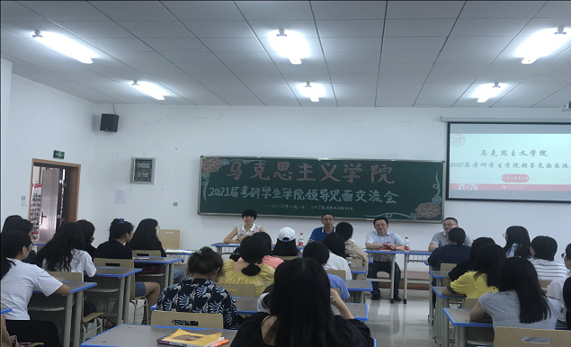 活动伊始,马小又老师介绍与会领导及活动流程,同学们热烈鼓掌欢迎。陈洪院长就为什么考研谈了三点看法,他指出:考研是一种大趋势,是大环境下对思想政治教育工作者提出的要求;考研是一次大检阅,在知识、能力及意志品质方面对考研同学提出更高的要求;考研是一场大战役,是体力、脑力和心力的总体战、消耗战,要做好打持久战的准备。接下来方敏副书记从日常细节方面对同学们提出了四点建议:一是坚定信心,要相信学院和老师们永远是坚强的后盾;二是抓紧时间,保持学习热情、掌握方法技巧,精心备考;三是调整心态,学会调适自己的身心状况,劳逸结合;四是注意安全,疫情特殊时期,时刻做好防控,服从相关规定安排。紧接着刘军书记从为什么、怎么样、怎么做三方面与同学们进行了交流。他表示,从为什么考大学到为什么考研的转变,目标应当更明确,心理更加成熟,思考更加全面;怎么做应聚焦坚持二字,充分用好学校、学院资源,积极寻求学长学姐帮助;备考过程遇到困难怎么办,要敢于直面困难,战胜困难,抱团作战,在大环境中能够积极识变、勇于求变、敢于应变。