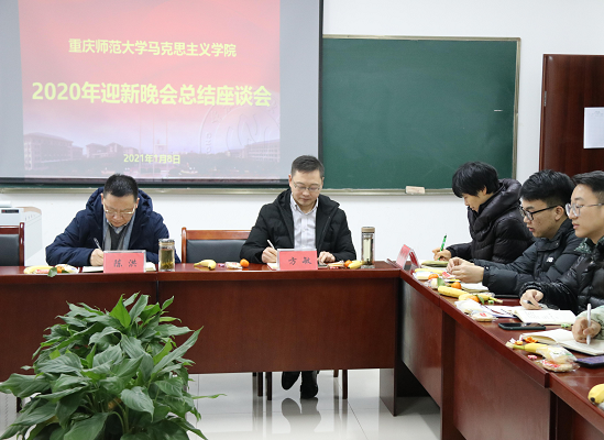 座谈会最后,陈洪院长以“锻炼”、“收获”两个关键词为引对晚会中学生骨干的工作进行总结。陈院长指出,本次晚会的筹备工作锻炼了学生骨干们的统筹规划、沟通协调以及组织管理能力;同时,学生骨干也在其中收获了感动、自信、友谊、责任、奉献等成长养料。此外,陈洪院长以思想性、连贯性、艺术性、观赏性、感染性“五性”对本次晚会作出总结与评价,并对2021年迎新晚会提出建议与希望。