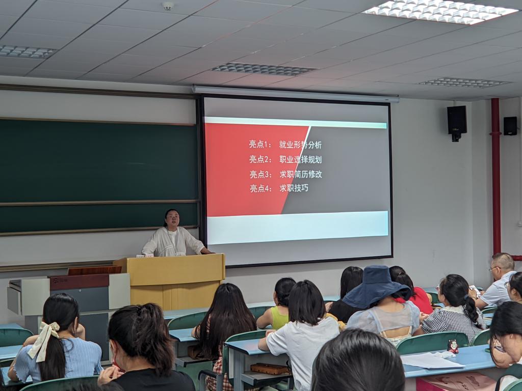 为解答同学们在就业中的困惑,帮助同学们了解就业形势,就业政策,转变就业观念,提高就业技能,树立正确的就业、择业观。2022年6月21日下午,我院邀请中公教育胡蓝月老师,在求是楼321开展第二场就业指导讲座。我院副院长姜土生、党委副书记方敏、研究生班主任李剑、2019级本科生班主任陈沉应邀出席,2023届本科、研究生同学参加了此次讲座。
