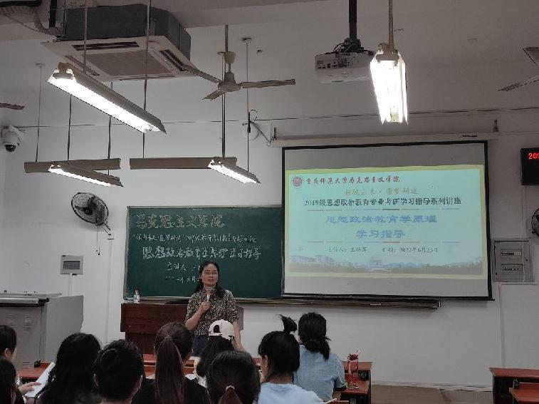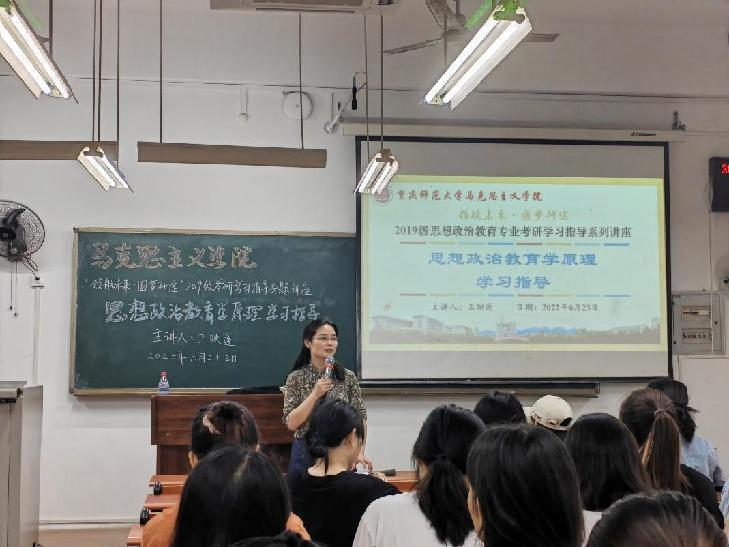 为调动学生考研的积极性、提升备考效率,并提供学习思想政治教育学原理的方法论指导,2022年6月23日13时30分,院特于弘德楼12101开展“思想政治教育学原理学习指导”专题讲座,本次讲座邀请王映莲老师担任主讲嘉宾,符路同学主持此次讲座,2019级报考思想政治教育专业的同学积极聆听讲座。