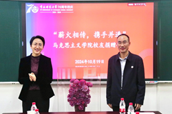 李晓燕书记首先对各位校友们回到母校以及向学院捐赠“花开富贵”表达衷心的感谢,接着指出“花开富贵”寓意着马院桃李芬芳,是马院情怀的展现,更是马院“崇德、尚美、博学、笃志”院训精神的传递。李书记提到,这份深情厚谊必将激励更多马院学子心系母校和学院发展、坚定回报祖国和社会的决心。