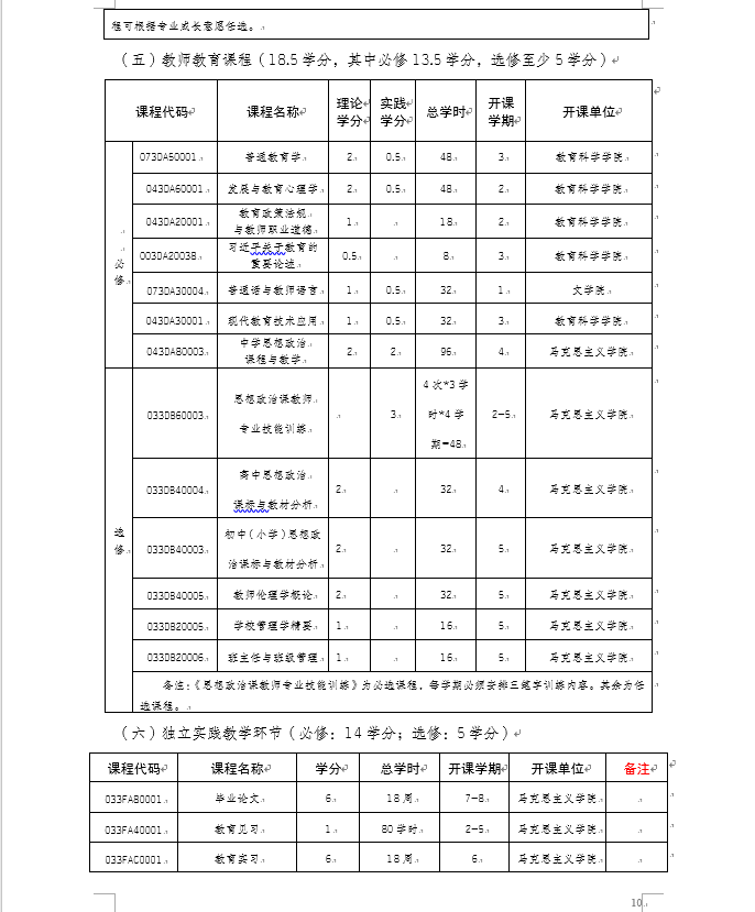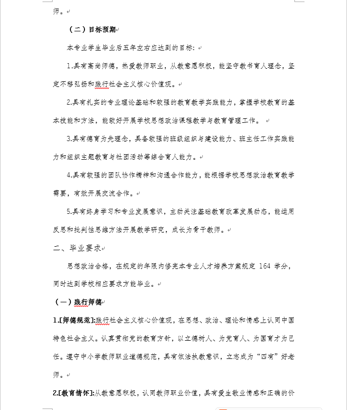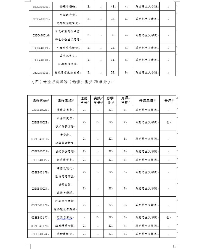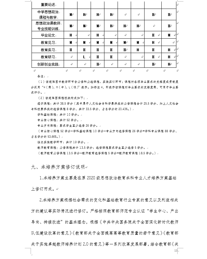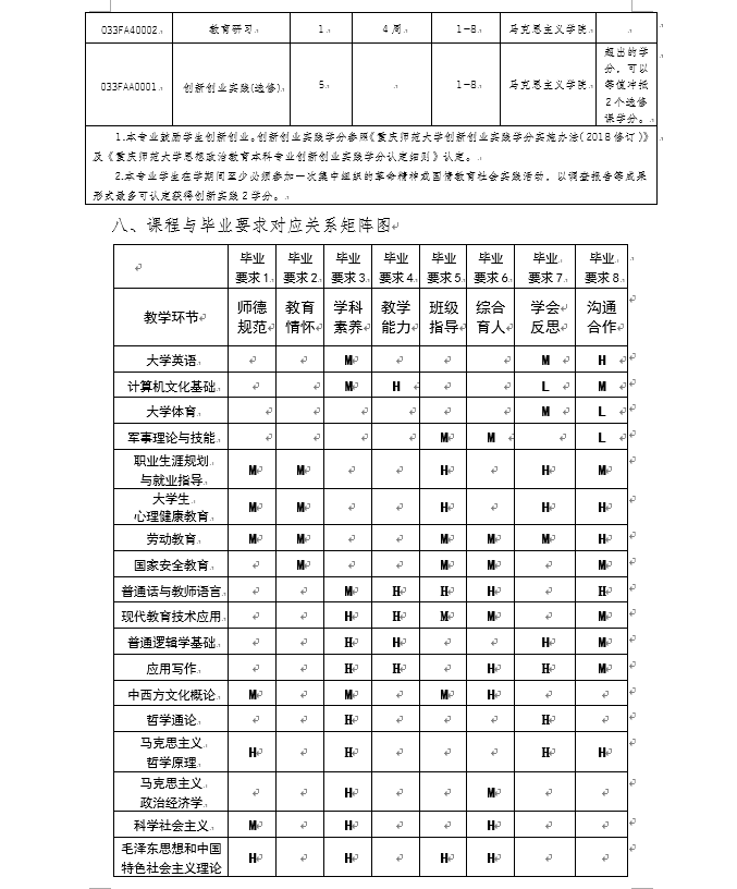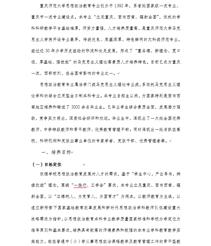 重庆师范大学2020级思想政治教育专业(师范)本科人才培养方案