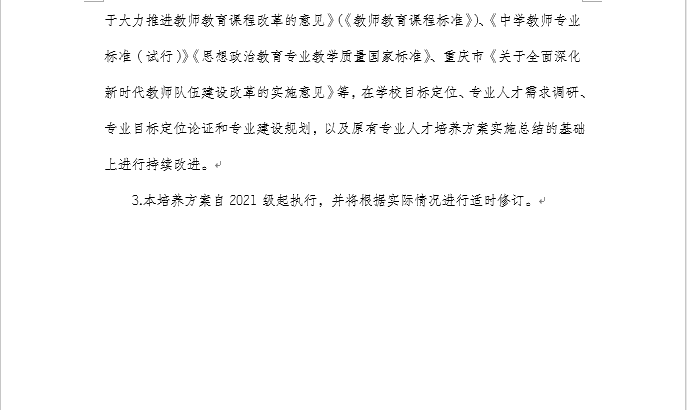 重庆师范大学2021级思想政治教育专业(师范)本科人才培养方案