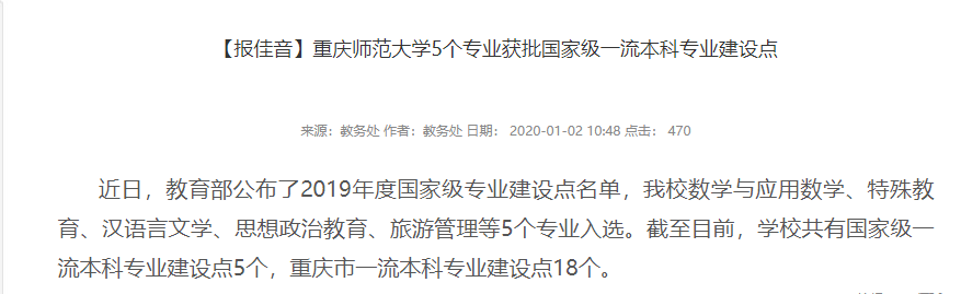 重庆师范大学思想政治教育专业获批国家级一流本科专业建设点