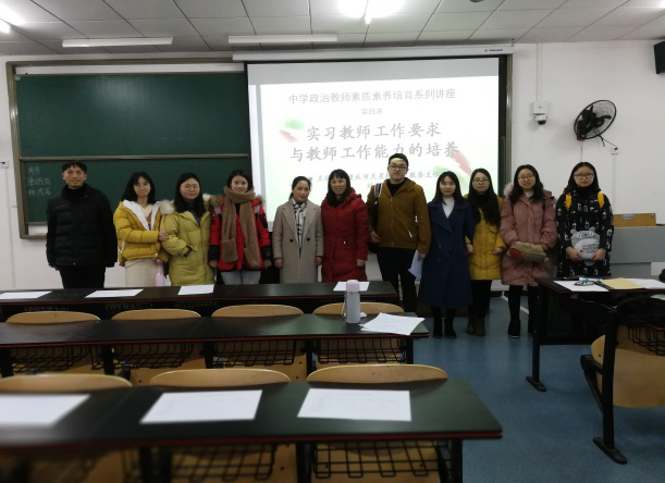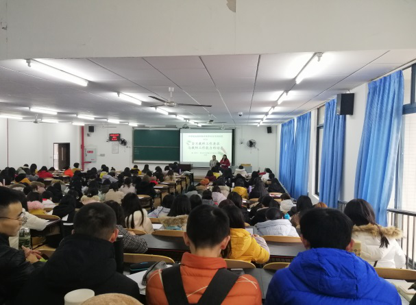 为了让同学们更进一步地了解中学教育教学的实际情况,为即将进入中学实习时能更好地开展教育教学实践做准备。学院特此邀请了重庆市天星桥中学教务主任刘莉老师于2018年12月12日14:30—16:00在励志楼2309为2016级的全体同学开展了一场题为“实习教师工作要求与教师工作能力的培养”的专题讲座。