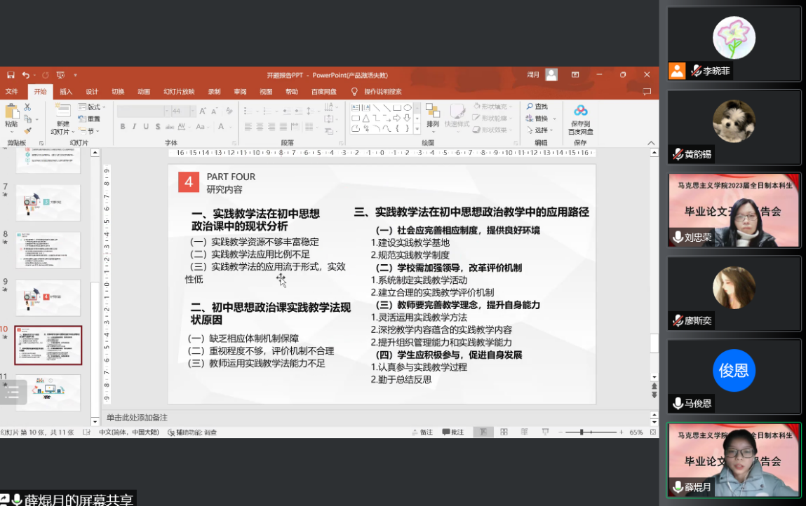 此次本科生开题报告会从14:30开始,持续到18:30结束。通过开题报告会,提升了本科生对论文选题的重视度,提高了本科生的学术研究思维与能力,为毕业论文的顺利撰写奠定了良好的基础。