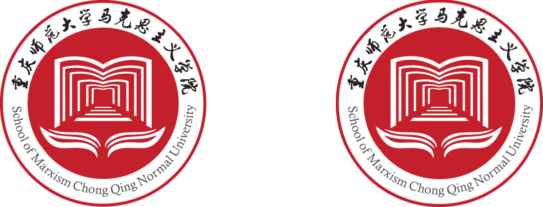 院徽整体由花叶、M字、阶梯和外圈中英文字组成。花叶继承了重庆师范大学校徽的花叶元素,寓意学院属于重庆师范大学,也继承了重庆师范大学的优良传统与办学理念。标志图形上半部分以马克思主义英文“Marxism”首字母“M”作为设计原型,同时兼有中文“门”的拼音首字,寓意开启马克思主义的大门。“M”还结合翻开的书本,寓意马克思主义理论知识的传授和学习,同时在书页的下方有一个阶梯,象征进步的阶梯,也象征脚踏实地、砥砺前行;书本和阶梯的结合,也寓意马克思主义理论与实践的结合,符合马克思主义学科的发展要求。门和阶梯向尽头延伸,象征进入另外一个更加广阔的空间,寓意马克思主义的博大精深,以及对理论探索和实践追求的永无止境。